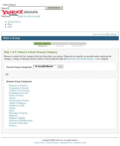 - Untuk membuat Mailing List pada kedua group hampir sama, selanjut ikuti penjelasan dibawah pada Yahoo! Group saja ->Lakukan login dengan Yahoo! ID, klik create a group yang akan kita buat atau langsung klik start your group ->